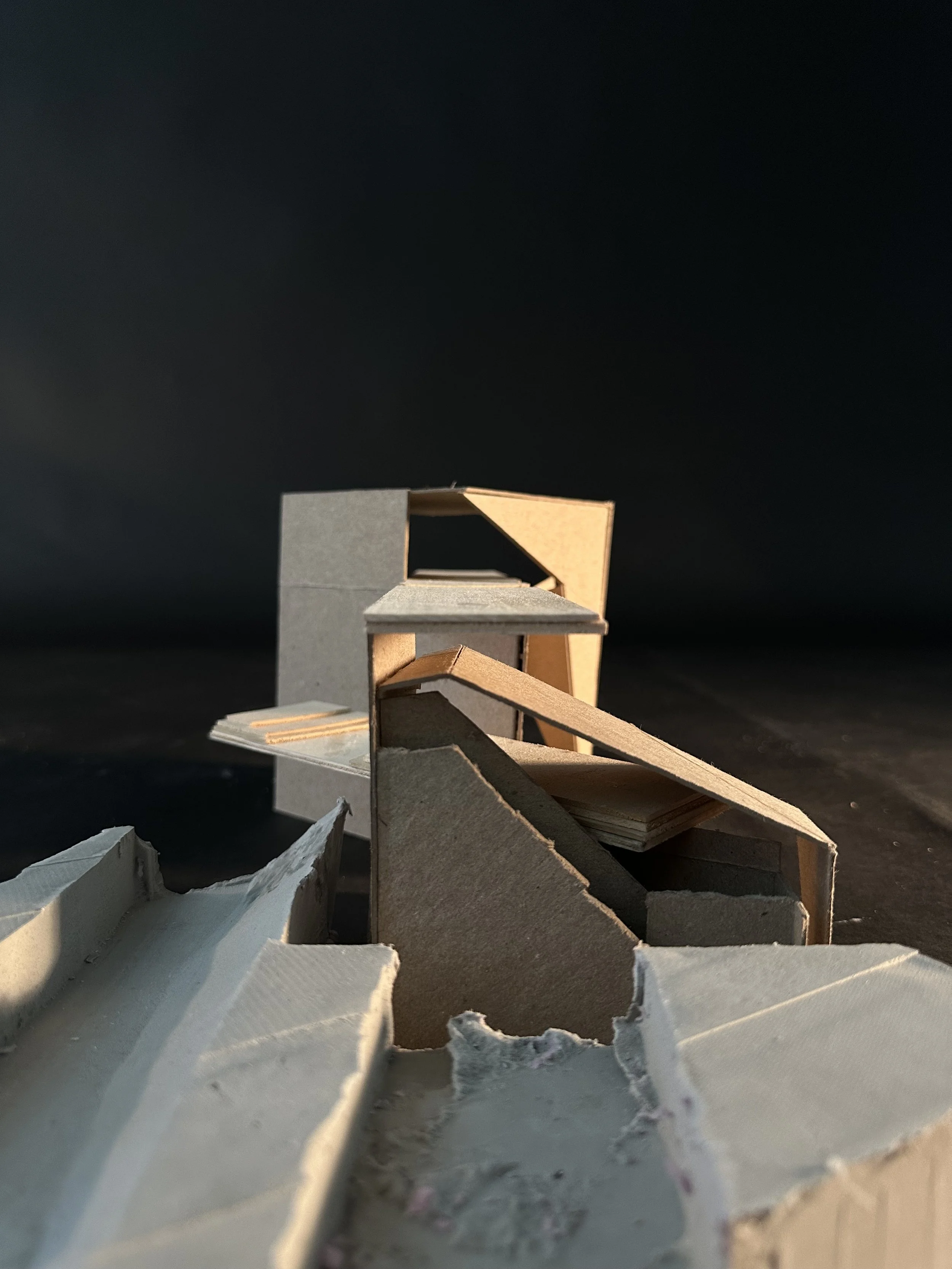 FIRST YEAR STUDIO PROJECT. THE CONCEPT IS TO SEE THE PASSAGE OF TIME FROM THE START ( AT THE BOTTOM OF THE MODEL) TO THE VERY TOP WHERE THERE IS A VIEWING PLATFORM WERE YOU HAVE A VIEW TO THE STARTING POINT.